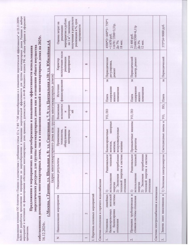 Предложения о мероприятиях на 2025г. по энергосбережению и повышению эффективности использования энергетических ресурсов для группы МКД по адресу: ул. Школьная.,д8, ул.Спортивная,д.7,9; ул.Центральная,д.10, ул.Юбилейная,д.4